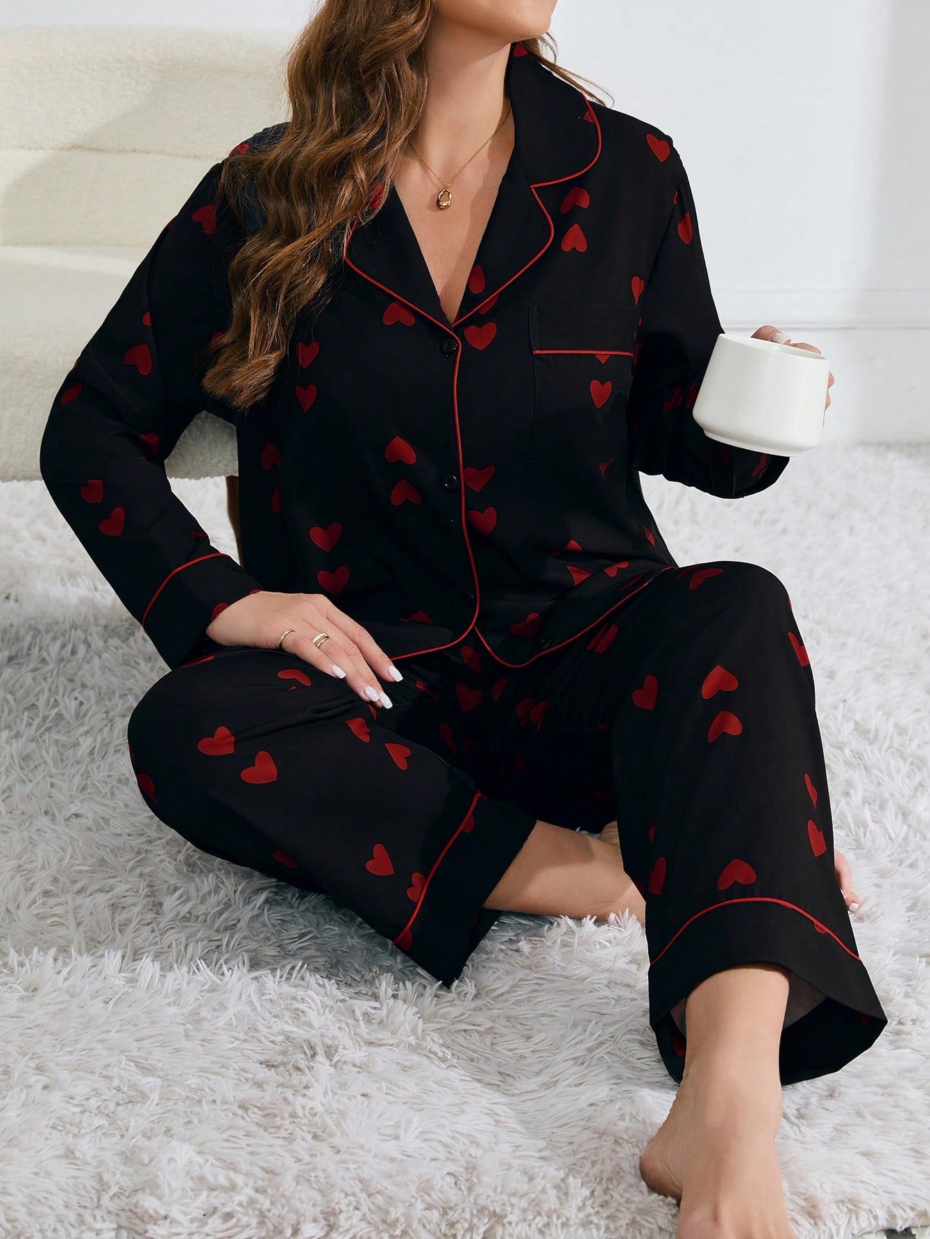 بيجامه كم قلوب زراير اسود خريفى